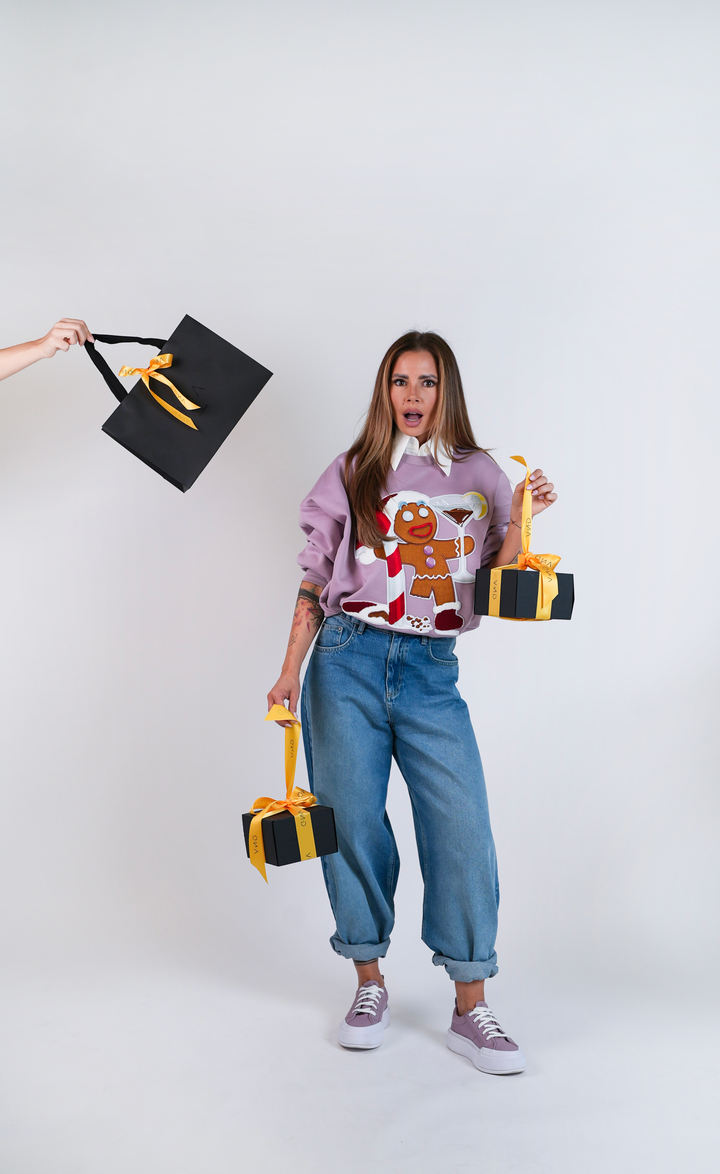 Mikina, která okamžitě přitáhne pozornost – díky mega 3D výšivce Perníčka, který si užívá svátky přesně tak, jak by měl: s cukrovou hůlkou v jedné ruce a drinkem v druhé.