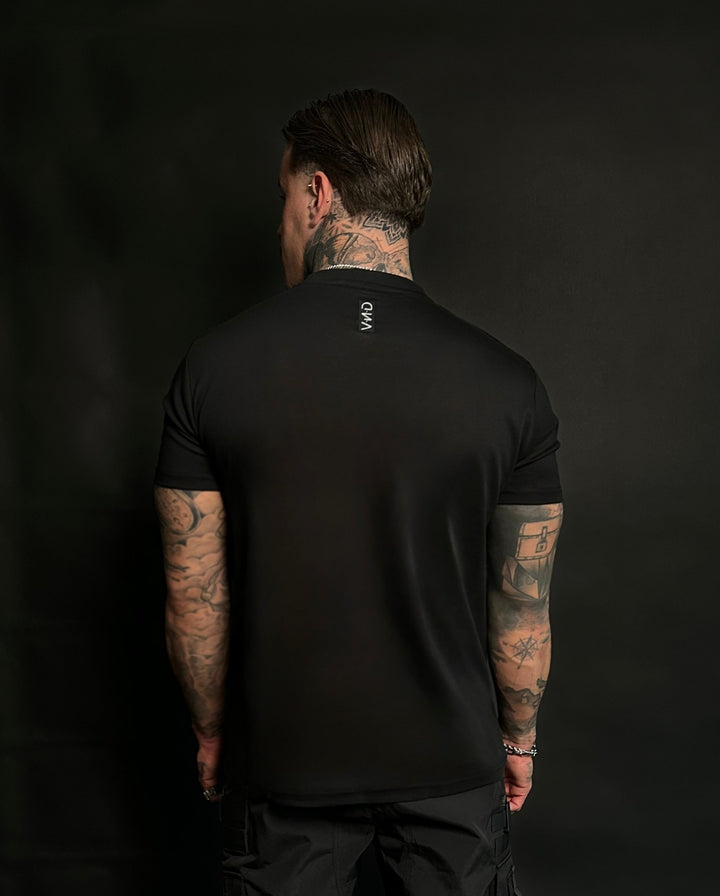 Na zádech je umístěn čistý DNA / ČMA label u límce.